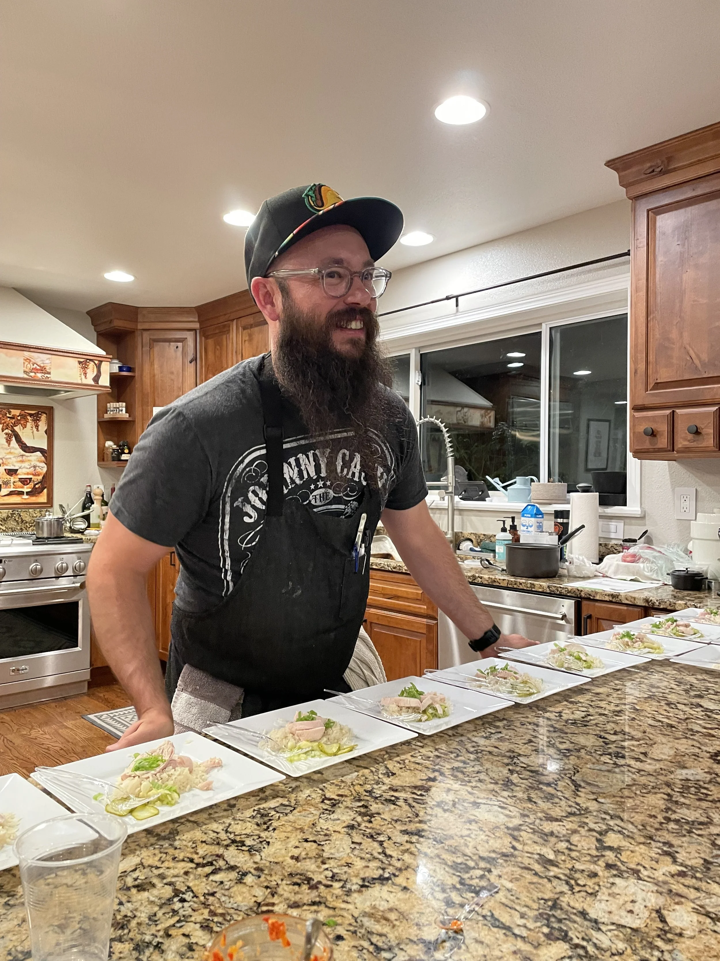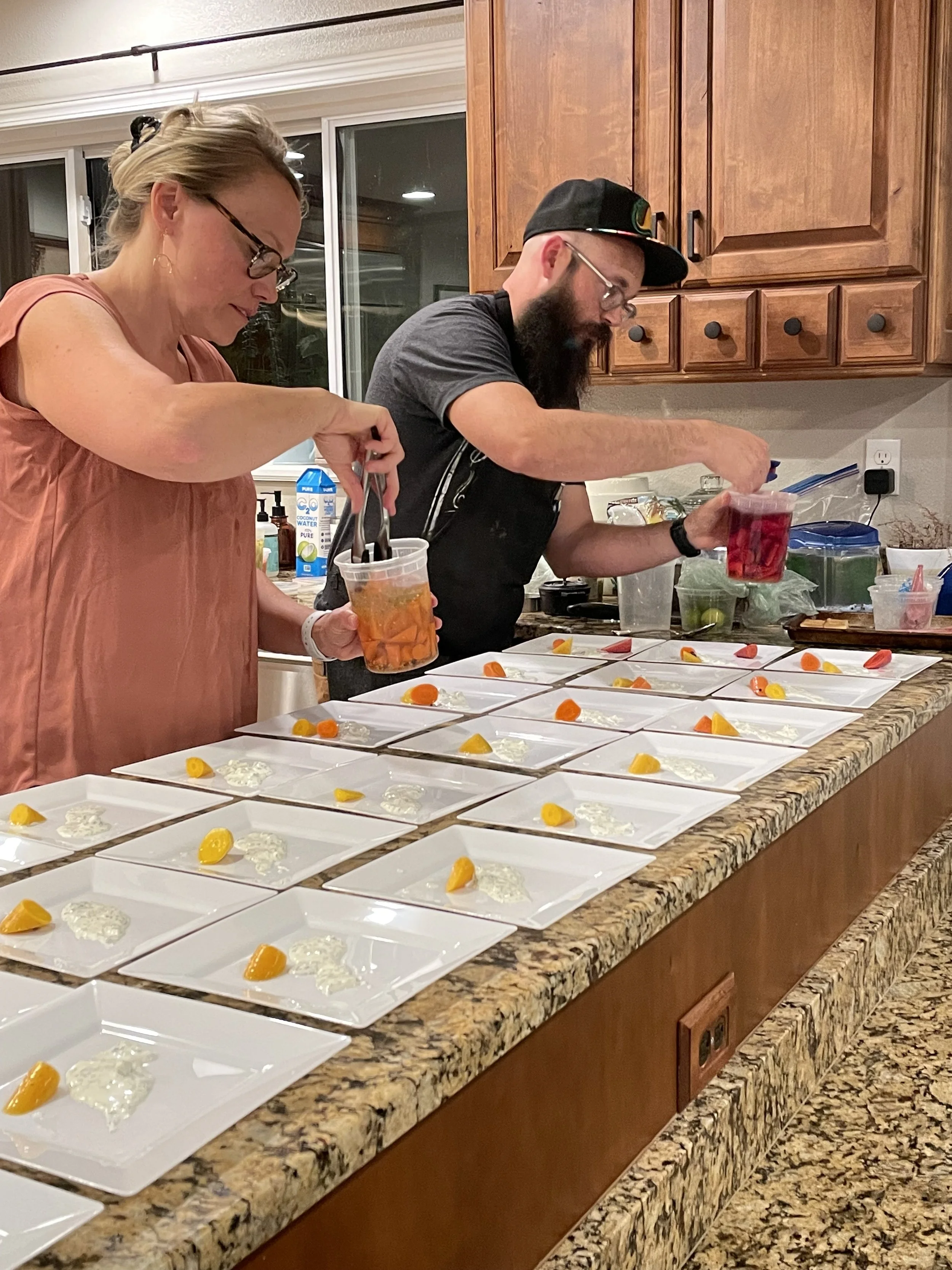 Before meeting, Stacey worked front of the house and banquets at a five-diamond resort in Wisconsin. Before entering pastoral ministry, Mark worked in the kitchen of a Michelin-starred restaurant in Chicago and ran kitchens in St. Louis. They both also lived overseas as missionaries — Stacey in Japan and Mark in Costa Rica.